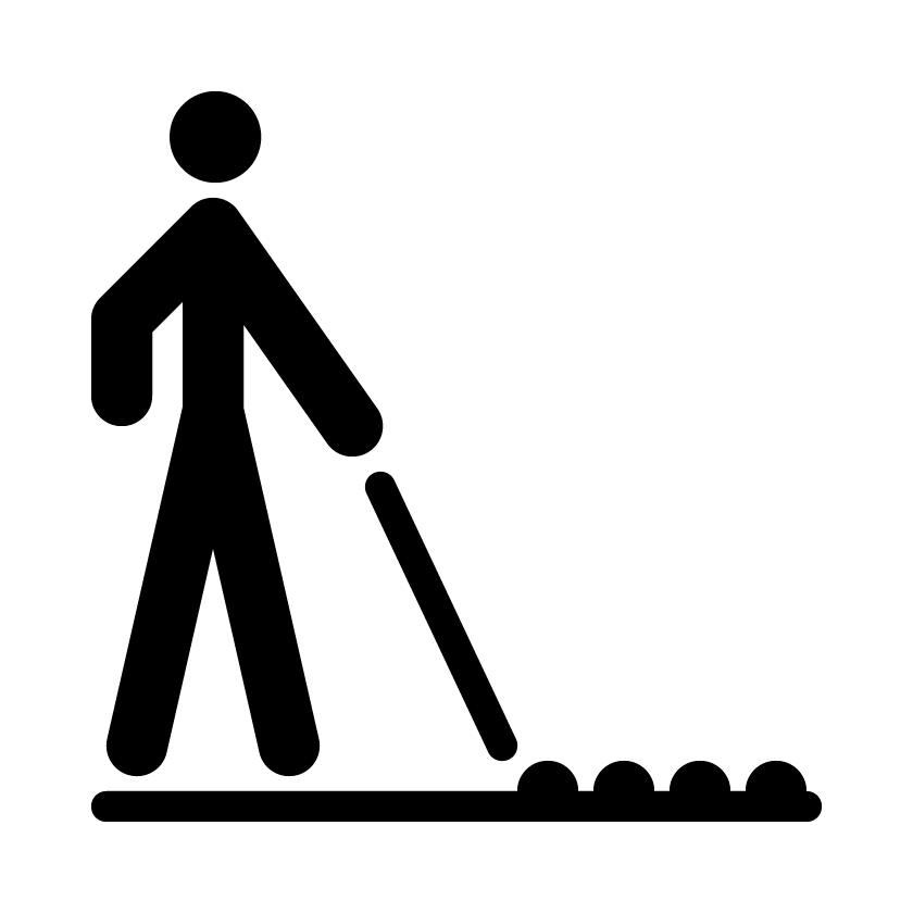Este pictograma se usa para señalizar la existencia de pavimento táctil en itinerarios peatonales accesibles. Se recomienda su aplicación en planos y folletos. Al ser un pictograma de comprensión media, es imprescindible acompañarlo con el texto “Pavimento táctil”.